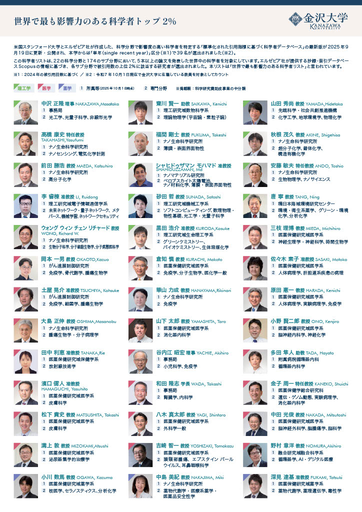 吉崎智一先生が「世界で最も影響力のある科学者トップ2%」に選出されました